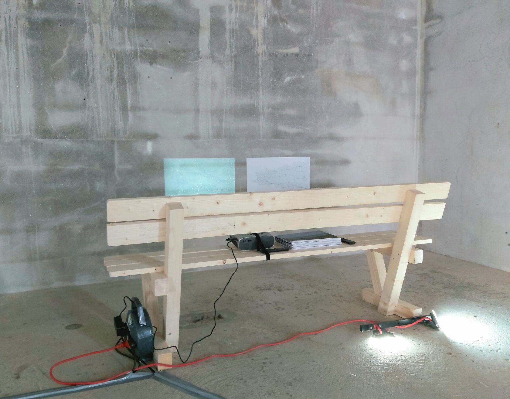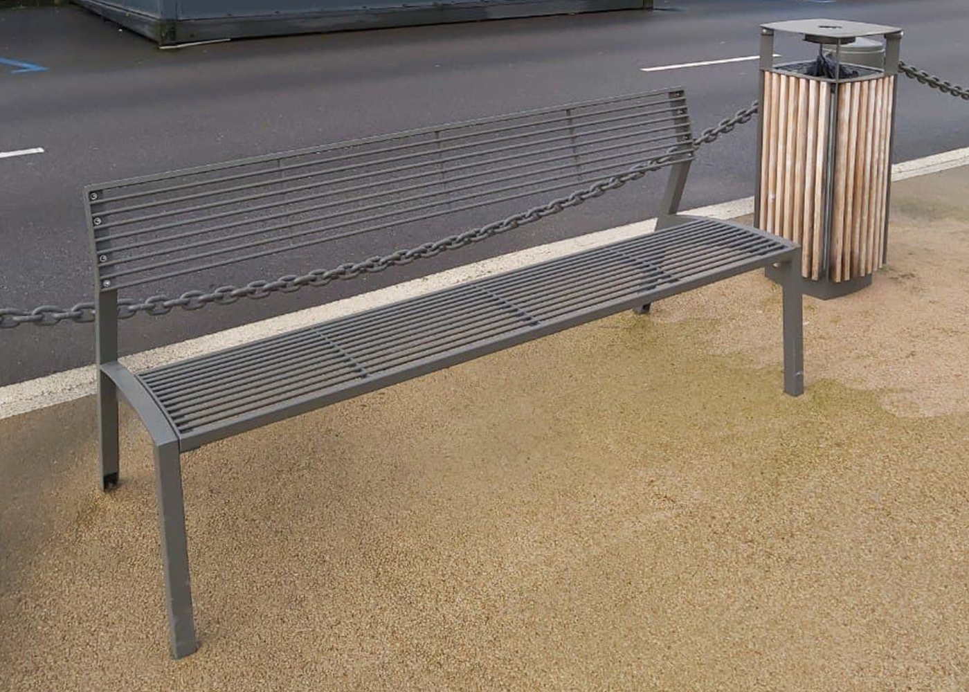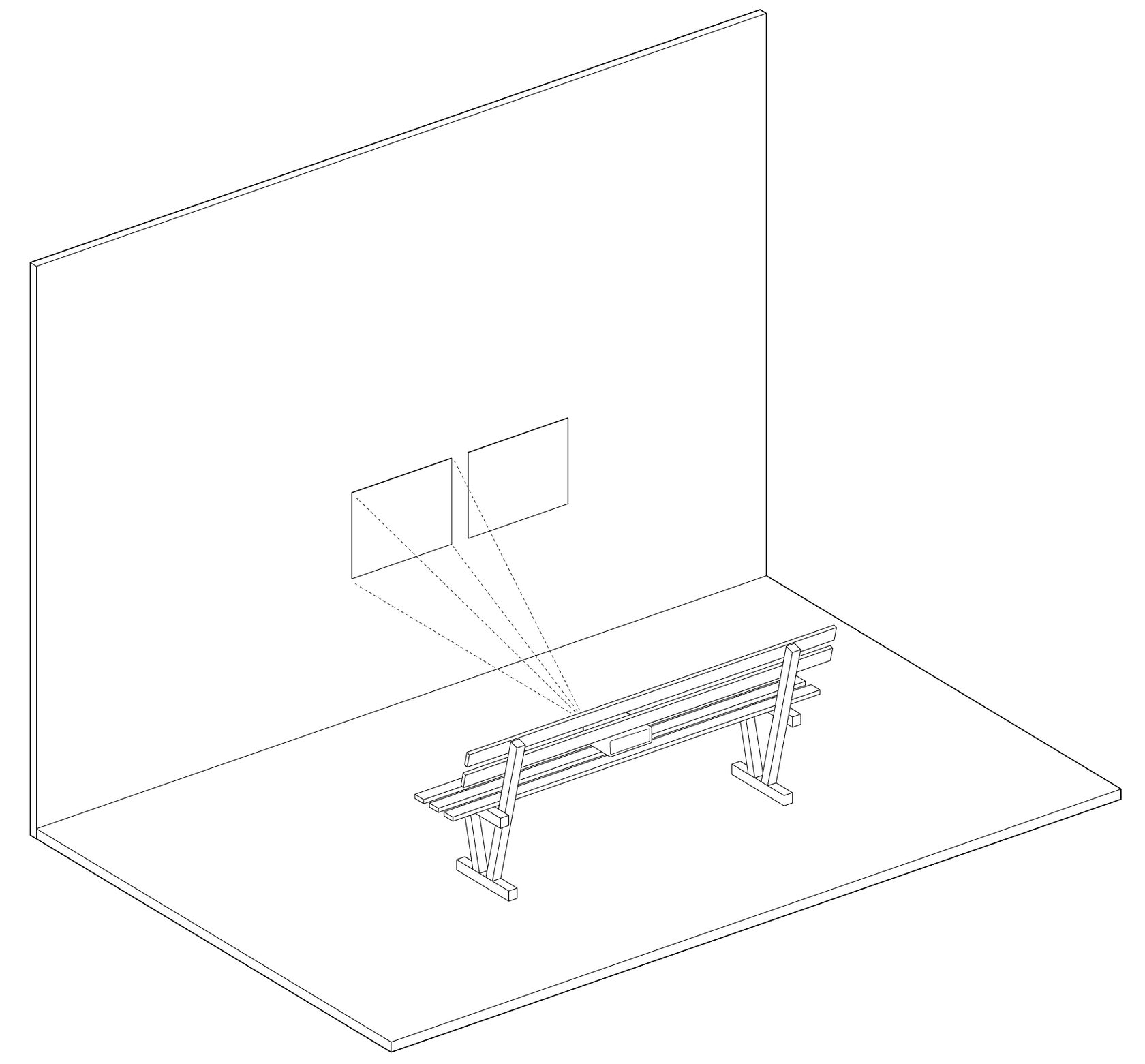 Главным элементом экспозиции стала деревянная скамья, представляющая усредненный образ скамеек закупаемых местным муниципалитетом.